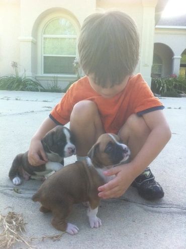 Our dogs and puppies are worked with on a daily basis. They have areas to exercise and play. We have top of the line breeding. Our boxers are related to one of the top boxers in the US. From our home to yours we strive to have you bring home a healthy and well balanced puppy.